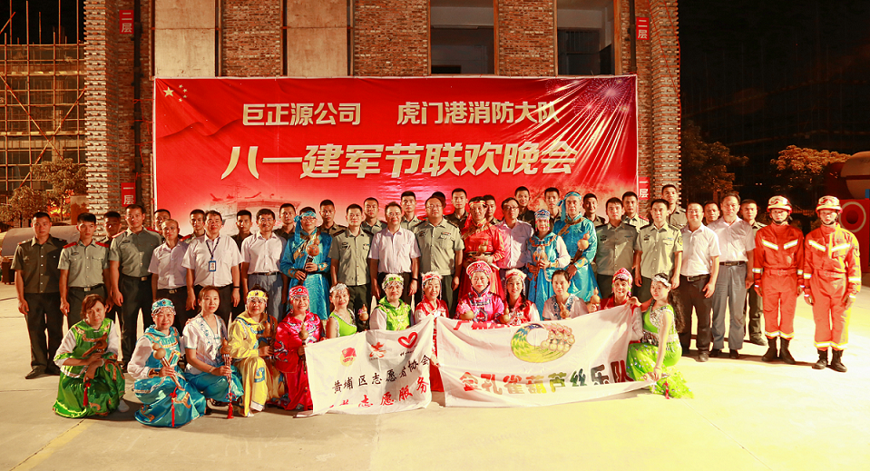 慶祝中國(guó)人民解放軍建軍91周年,2018年8月1日晚,巨正源公司與虎門港消防大隊(duì)舉辦了慶“八一”聯(lián)歡晚會(huì),公司領(lǐng)導(dǎo)曾一平、張寶業(yè)、李漢初、張金明、梁偉雄和虎門港消防大隊(duì)教導(dǎo)員張文超、大隊(duì)長(zhǎng)曹梓信等領(lǐng)導(dǎo)出席活動(dòng)。消防大隊(duì)官兵、巨正源退伍軍人員工、新入職員工及廣州石化葫蘆絲協(xié)會(huì)表演隊(duì)等共300余人參加了活動(dòng)。