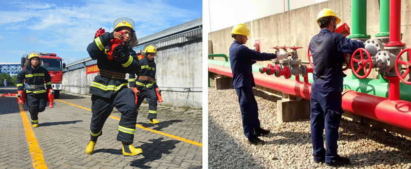 “作風頑強、業務精湛、救援有力”不僅是一句口號,更是一種承諾。自消防班成立以來,消防班始終嚴抓隊伍建設,刻苦地訓練,頑強的拼搏,提高自身學歷,考取安全管理相關證書,使每個隊員真正做到技能學的過硬,武藝練的過精。消防班適時進行實戰演練,多次成功舉辦與政府消防聯合模擬演練、反恐演練、公司級演練及其它的突擊盲演,同時代表公司參加各類消防技能競賽,連續榮獲佳績。